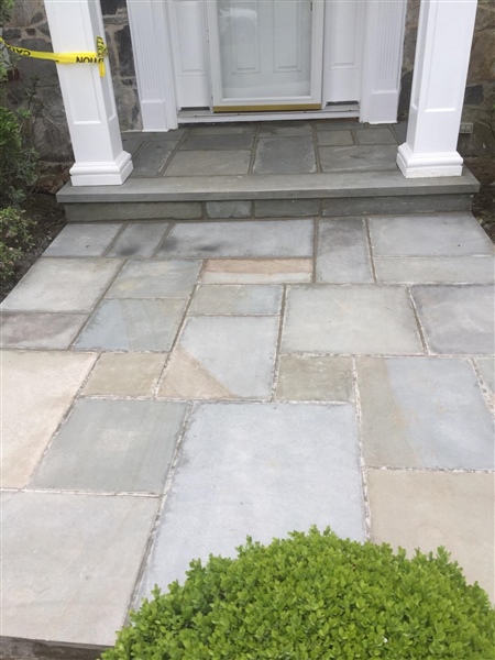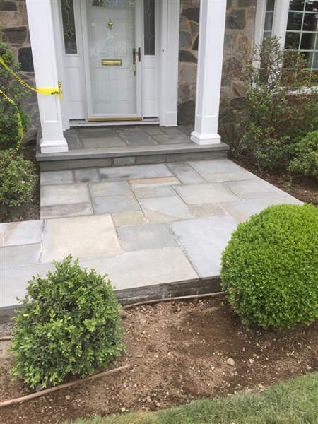 This Suffolk County home now welcomes guests with a stunning new stone entrance that perfectly blends natural charm and lasting craftsmanship. The old entryway was replaced with precision-cut bluestone slabs, laid in a custom pattern that leads seamlessly to the front door. Framed by lush greenery and neatly edged garden beds, the new walkway not only enhances curb appeal but also adds real value and durability. Each stone was leveled and jointed with care by the Top of the Line Landscaping & Masonry team — creating a smooth, elegant approach that reflects both skill and attention to detail. A timeless upgrade for a beautiful Long Island property.